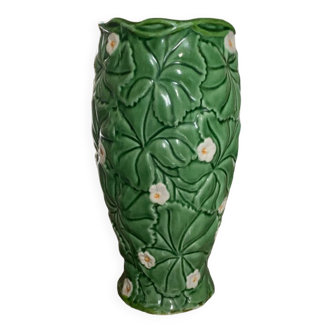 Tevan margit (1901-1978) blown glass vase, pewter mount with semi-precious stone cabochons. Very good condition.