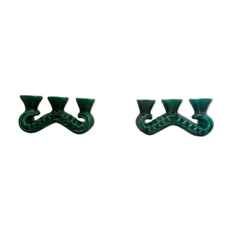 4 enamelled cast iron hooks, red. 2 holes for fixing. State of use, some scales (photos) In its juice. 1960s-80s. 4 cm wide. Wall removal: 10 cm. 16 cm high.