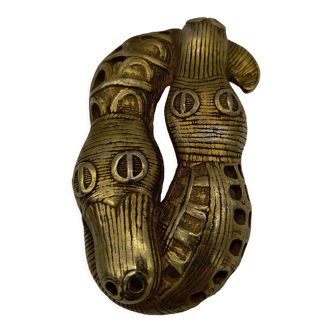 Long articulated wooden snake handcrafted, probably north africa represents a trained cobra good general condition, weathered wood it probably once had a tongue total length: 96 cm height: 15.5 cm.