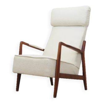 Vintage Lounge Chair – Adolf Relling & Torbjørn Bekken, 1957. Iconic Norwegian design lounge chair from 1957, designed by Adolf Relling & Torbjørn Bekken for the design studio Rastad & Relling and produced by Arnestad Bruk. This chair is renowned for its exceptional comfort and solid craftsmanship. The seating position is adjustable in multiple positions via a handle located beneath the seat, offering both relaxation and functionality. The chair has been recently restored and reupholstered in a high-quality beige wool fabric. A comfortable lounge chair with a timeless Scandinavian character. Dimensions: • Height: 105 cm. • Width: 56 cm. • Depth: 72 cm. • Seat height: 42 cm.