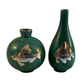 Vase made by the famous designer fabienne jouvin. Unique piece. Created 9.8.1998. Perfect condition. About fish and in chinese style.