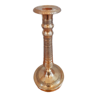 Brass vase from the 1960s, engraved and painted with floral motifs. Superb condition. Characteristics: height: 30cm base diameter: 8.5cm.