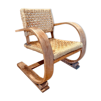 Very nice colonial armchair in wood and bamboo, with rounded sides. Very good condition.