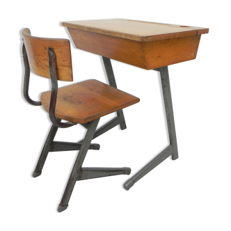 School office of the 60s. The metal tube structure is in very good condition of solidity, the top and seats are made of wood. The furniture is in its juice, with wear marks visible in the photos. Size. Shelf height 65 X seat height 42cm xl120 (total width)x p83 (total footprint in depth) Industrial style school desk made from oak wood and tubular steel. The desk was made in the 1960s in france and is in a good original condition with age-related signs of usage ( see the pictures).