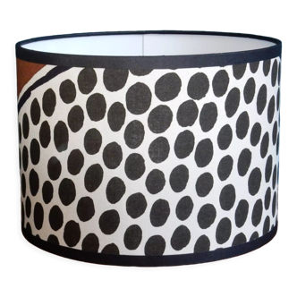 A pretty colorful wax lampshade to bring a touch of cheerfulness to your décor! To hang from the ceiling or to screw on a light fixture or a floor lamp, in the blink of an eye breathe a wind of originality and audacity into your home! Dimension: high diameter: 18 cm. bottom diameter: 24 cm. height: 18 cm. Wax print fabric applied to white, opal, transparent gold or silver polyphane. Sold without electrical device or bulb. For socket e 27.