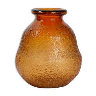 Old henkel orange-brown glass vase. Retro decoration year 1950.