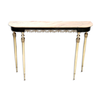 Superb coffee table in marble and brass oval shape. The tray has been completely stripped to remove the old yellowed varnish and protected by a thin layer of protector to revive its shine. Marble remains a fragile material and must be taken care of. The feet are adorned with beautiful floral motifs. Dimensions: height: 47cm / length: about 91cm / width: 48cm. Weight: 22.5kg. Another similar but round table is available in my shop. Fast and free delivery possible between nîmes, montpellier and surroundings. But also lyon region. Do not hesitate to contact me to find out if you can benefit from it!.
