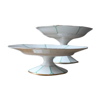 White porcelain salad net silver art deco shape conical diameter 25.5cm, height 11cm, depth 9.5cm. Very good condition sign of use on the net of the edge if not impeccable, a mini dark point on the bottom (see photo), no shine or crack clean. Conical shape on foot, very deep, presented with horn cutlery from the same era for sale on another ad.