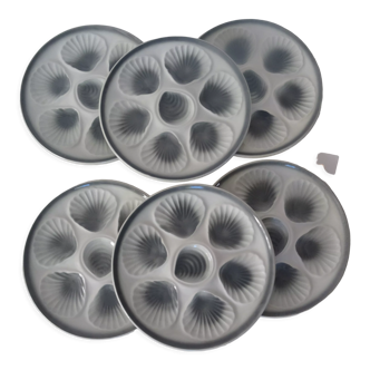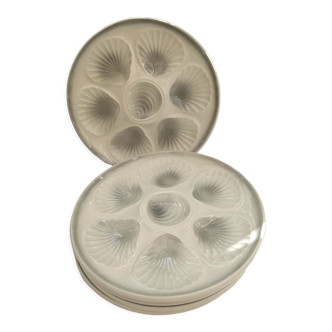 Earthenware oyster dish, moulin des loups orchies. A tiny chip on the edge, see photos. Diameter 33.4.