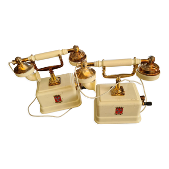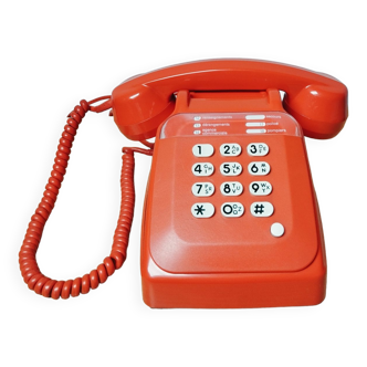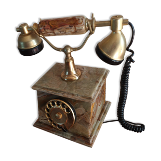 Late 70s rotary telephone, with handset and earpiece.