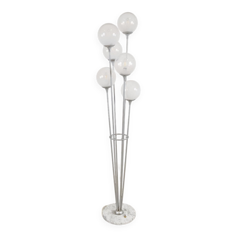 Minimalist floor lamp. Vintage. 1960. Black and gold stems and base. 3 white opalines. 160cm high. And 23cm wide. Vintage.