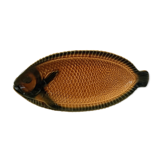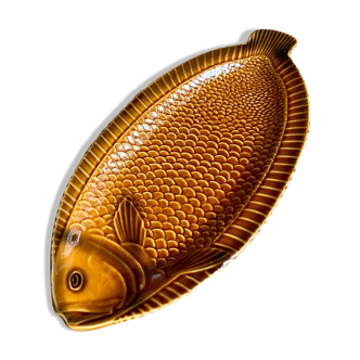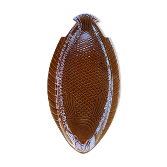 Sarreguemines khaki dish fish-shaped good condition 53x26cm a tiny chip (see photo).
