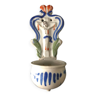 Old font in glazed terracotta with floral motif.