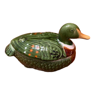 Pretty zoomorphic bottle in the shape of a duck. Ceramic, made in portugal. Originally it was a vinegar maker, letter V written on the front, today it can make a joyful decoration in a kitchen. Careful shipping.