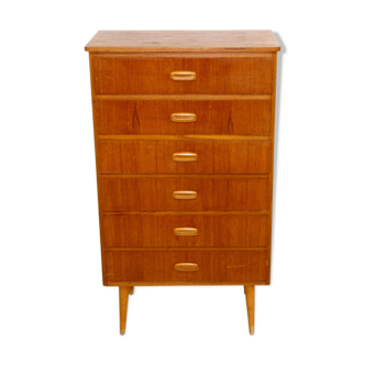 Old chest of drawers 70s. Chest of drawers 4 drawers. Wooden chest of drawers. Black compass feet. Chest of drawers on wheels. Dimensions: l60 X l45 X h70.5cm. Floor dimensions l62 X l45cm. Plating jumps. Missing a handle. See photo. No claims. Shipping by carrier. Contact me for all requests. Fast shipping and cares. Many vintage items for sale. Regular arrival.