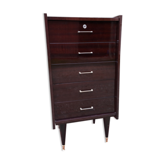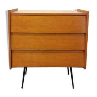 Old chest of drawers 4 drawers wood feet compass black + castors 70s vintage