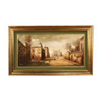 Oil on panel, view of the street of the church in a village to discover, signature lower left to identify, dated 1933. The frame measures 44.5 X 54.5.