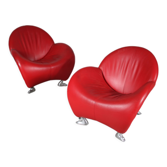 The first public edition of the lounge designed in 1971 for the private apartments of Claude and Georges Pompidou at the Elysée Palace, Pumpkin is characteristic of the revolutionary style of Pierre Paulin that he initiated at the end of the 1950s. Formally, Pumpkin evokes a giant pumpkin that offers a protective and voluptuous shell to its user. The armchair for sale, a Ligne Roset reissue, is in burgundy leather, IN PERFECT CONDITION, delivered with a pot of care cream