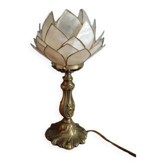 "lotus" wall light in hammered brass and silver-plated metal, attributed to isabelle faure, designer from the 70s. Unique piece in very good condition.