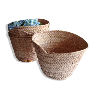 Basket with wicker handles openwork on the top... Braided wicker 10 turns. Handmade essaouira morocco. Length 48 cm height 34 cm.
