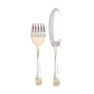 Charming vintage cake serving set consisting of a cake server and a serving spoon, presented in its original case lined with red satin. The pieces feature a simple and elegant design typical of the mid-20th century, with lovely handles finely decorated. The silver-plated metal offers a beautiful shine and is in very good condition, with no notable oxidation. A refined set, ideal for a festive table, a wedding gift, or for vintage tableware enthusiasts. Details: • Era: circa 1950–1970. • Material: silver-plated metal. • Content: 1 cake server + 1 serving spoon. • Original case included. • Condition: very good overall condition. A decorative and functional item, perfect for adding a chic and timeless touch to your interior or your reception tableware.