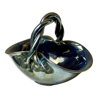 Handmade cherries on both sides of the basket height with handle: approximately 15 cm height of basket without handle: 7 cm basket dimensions: 15 X 12.5 cm base diameter: 7 cm orange-brown color carefully protected shipping.