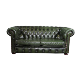 Beautiful leather sofa with rectangular flat chrome metal legs in excellent condition and very comfortable. Black leather sofa. Tufted leather sofa. Black sofa.