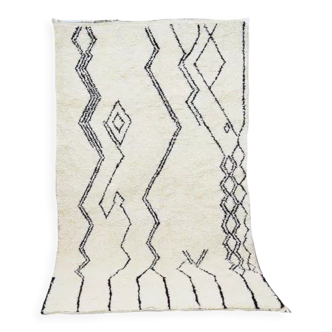 100% handmade Berber rug from Ouadzem, woven from soft and thick natural wool for premium comfort. Its warm colours (clay, grey, ivory, amber) and geometric patterns inspired by Berber art bring a modern and soothing touch to any space: living room, bedroom, or office. Each piece, unique, requires up to 10 days of artisanal work and can be customised according to your desired dimensions and colours.