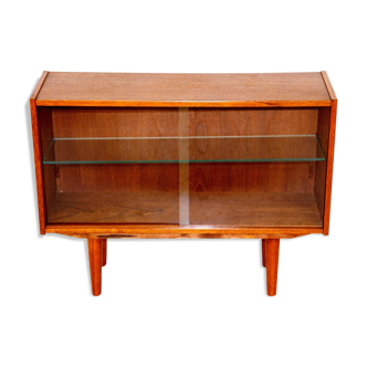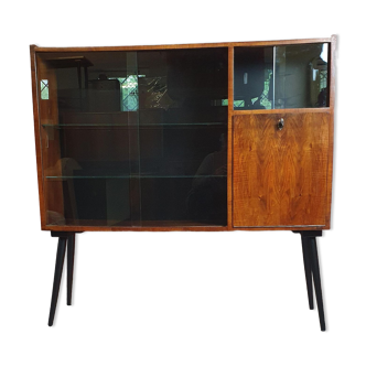 Small piece of furniture with display window and functional lighting, one display side and one cupboard side.