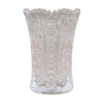 Large vintage molded glass vase. Geometric reliefs. Its height can accommodate large bouquets. Very stable. In perfect condition. A lovely piece that will fit into a variety of decorating styles.