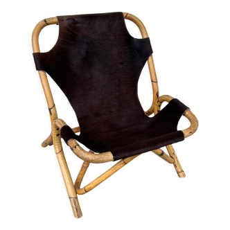 The tripolina chair is one of the great classics, just look at that! First designed in 1936 by vittoriano viganò, it was produced well into the 70s and we can see why. The elmwood frame, black sheet metal joints and cowhide seat are a pleasure to behold, and then you get to also sit in it, something we can assure you'll thoroughly enjoy. The fact that it's foldable means you can take it anywhere with you, so you're provided with eternal comfort to lay back and let life happen.