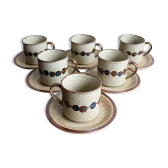 Set of 6 stoneware coffee cups from the 1970s.