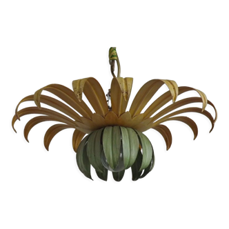 Wall light or ceiling light, metal flower, light pink petal, the middle has been repainted gold color, works perfectly, has some traces of wear.