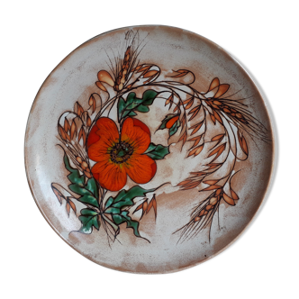 Pie dish unique piece beautifully decorated with spring poppies, to offer or to offer !!.