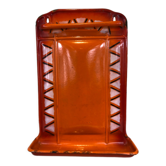 Old utensil holder, ladle holder in red and white enamelled sheet metal. Utensil holder from the 1950s in good condition, some enamel breaks to note, beautiful colors, beautiful shine. Dimensions 49cm X 35cm X 11cm. Superb in kitchen decoration.