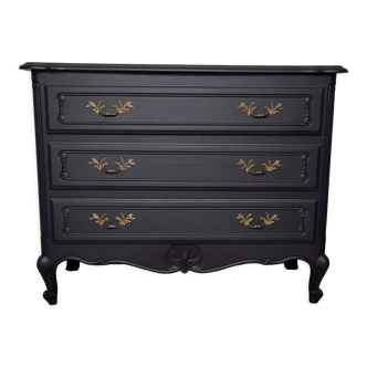 ✨ GIVE CHARACTER TO YOUR INTERIOR This cherry wood chest of drawers has been completely hand-renovated in my workshop. Combining the charm of the old with a contemporary touch, it will fit perfectly in an apartment or a house. 📏 FURNITURE DETAILS • Length: 91 cm. • Depth: 46 cm. • Height: 79.5 cm. • Wood: cherry. • 3 drawers. • Original brass handles, renovated and stripped. 🛠️ WORK CARRIED OUT WITH CARE • Complete sanding of the furniture. • Painted in Homestead Blue (Fusion Mineral Paint) • Stripping of metal parts. • Wood protection with Easy Déco Transparent oil (Rubio Monocoat) • Waxing of drawer slides. 🎨 QUALITY PRODUCTS AND FINISHES Each piece of furniture is crafted with high-end products, known for their durability and refined finish: • Fusion Mineral Paint: eco-friendly water-based paint and wax, resistant to impacts and stains. • Rubio Monocoat: natural oil and varnish that protect the wood while enhancing its grain. These finishes ensure that each creation maintains its beauty over time, while respecting health and the environment. A unique piece, designed to last.