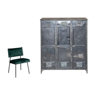Old factory cloakroom of very heavy metal door in its juice for a beautiful restoration project. It has lived well, small blows, scratches, a little rust and 2 door hinges not original (see photos) but still remains a very beautiful piece of industrial decoration restored or not. Dimensions: 63, 5x50x194cm.