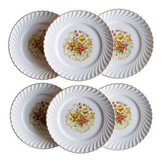 Set of 4 Fabiola plates - Digoin Sarreguemines earthenware from the 1950s. One plate has a crack (see photo). Multicoloured floral decoration hand-painted. It is possible to complete the set with a lot of 5 identical deep plates.