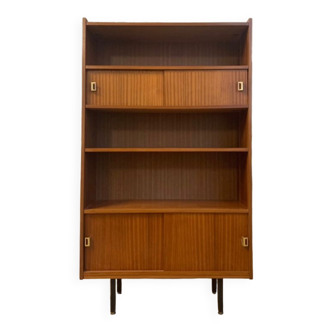 60s/70s painted wooden sliding doors colors: sunflower yellow, zinc blue and cream restored toy dimensions: 41.5 X 37.5 X 11.5 cm.