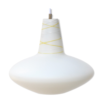 Pendant lamp in teak and opaline glass by Uno and Östen Kristiansson Luxus 50s