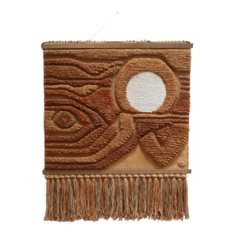 A ceramic plate signed intaglio Capron Vallauris France. Partially enameled. Dim without frame 36x10x1.5 cm With wooden frame 48x23x2 cm