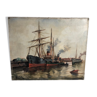 Beautiful watercolor on vintage paper, signed and dated august 1932 at the bottom right. In good condition, however, the bottom left corner is slightly damaged. It represents a port with a boat, located in cannes, as indicated by the beautiful handwritten mention of art nouveau type. Good mastery of perspectives and beautiful application of watercolor. This painting will add an iodine touch to your interior.