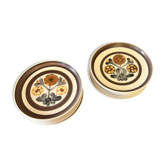 Turntable, mid-century modern springform cake tin from around 1970. Item made of plastic with ivory bakelite handles. The plate stands on a revolving foot, glass, matt top, engraved with a floral motif. Yellow plastic in popart style. Item in very good original condition, tray undamaged. Dimensions: height 3 cm|diameter 29 cm|width 30 cm|base diameter 19 cm. Dimensions in inches: height 1.2 in|diameter 11 in|width 12 in|base diameter 7.5 in.