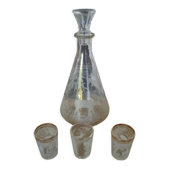 Six glasses of color feet lila and its decanter. Capacity of the glasses 10cl. Excellent condition. Year 70.