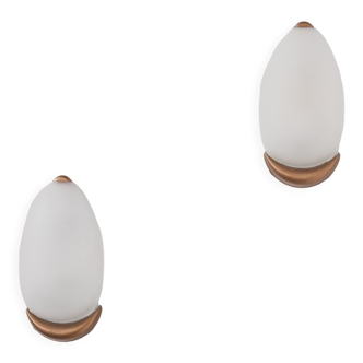 Pair of 1970 wall lights perfect condition plastic base white opaline globe no cracks height 17cm.