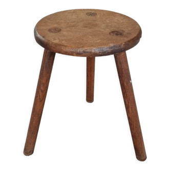 Ancient milking stool. Seat height = 43 cm – seat width = 33 cm. Seat depth = 33 cm – foot spacing = 42 / 46 cm.
