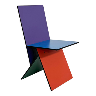 This beautiful vintage armchair has a very stylish shape and design. The chair is made of plywood with an original black finish and a red parallel line motif. See the photos for all the details! The chair is in good used condition and is a beautiful and impressive addition to any home. Dimensions approx: 70 cm length, 75 cm depth, 100 cm height and 45 cm seat height.