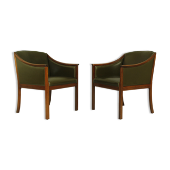 Office chairs and pair of empire style convertibles "return from Egypt", certainly in mahogany wood. Front base in lion's paw and bronze, some cracks on the green leather upholstery.details of wear of time visible in photo. Convertibles h: 71cm l: 53cm d: 55cm.