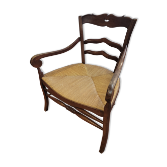 Louis philippe style lacrosse armchair in original straw walnut which is in good condition (some marks of wear). Dimensions: seat=43cm, depth=52 cm and total height=91cm.