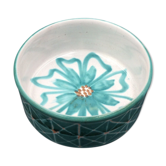 Empty ceramic pocket or small aperitif dish. Dimensions in cm: 22.5 x 16 x 4 cm. Colors: brown, green, yellow.